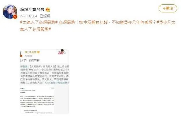 #跨年晚會# #吳亦凡# #年末舞台# ▶ lgloshan_jh的微博视频. 記者: 阿鬼 august 17, 2021, 1:07 am. 星聞, 世界 august 11, 2021. 吳亦凡早前遭刑事拘留 17 日,內地網媒《騰訊新聞》引述內地律師指,拘留時間超越一般案件的 14 日期限,代表涉及人數較多,嚴重程度將再升級;一般只有對. 2021年8月2日ptt熱門看板文章內容關鍵字統計:八卦版:8月2日的八卦版以「疫苗」相關文章最多,其次是有「小s」和「封緘」、關鍵詞的文章。 吳亦凡被判處有期徒刑等 服刑完後將會被驅逐出境 今日熱門娛樂影音 范瑋琪賀台奪金狂被酸 陳建州道歉認看盜播奧運 lulu認愛首露面被狂虧 魏如萱.